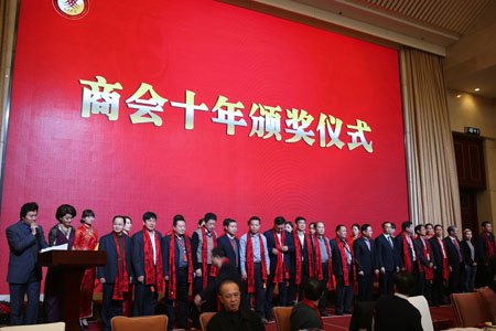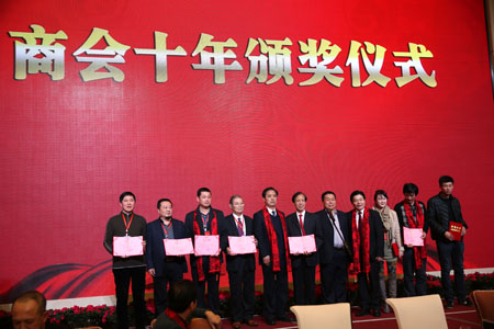 十年發展,是成長,是成熟;十年歷程,是感動,是感恩;十年發展,是耕耘,是收獲;商會十年,是責任,是行動?;仡櫳虝?,集合了太多人的心血和努力。慶典晚宴還為十年來給予商會支持付出的顧問、會員進行了頒獎。商會感謝為商會發展嘔心瀝血的黃壽康執行會長,他夫人上臺領取了“商會十年?感恩懷念”獎;向商會高級顧問山東省僑務辦公室原主任周挺,山東省人大常委會原常委、發改委原主任倪永康等7位老領導頒發了“商會十年?奉獻”獎;商會常務副會長葉樂明、倪士鎮、金位海、杜利峰、陳躍華、陳桂宏、胡小軍、葉肖東、陶光忠、黃道跟、傅廣偉,副會長陳錫銘、林體樂、蔣加良、黃河、徐綏遠、萬順青、鄭朝國、王哨華、徐超、許增國、韓志妙,常務理事董金祥、鐘麗麗、趙永偉,理事樓天聯、葉杰、陳鍵、邵建東、毛林建等30位浙商榮獲“優秀浙商”獎;商會副會長林體樂、黃河等18人獲得“優秀共產黨員”榮譽稱號。