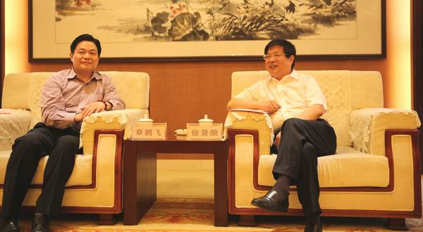 6月5日,聊城市委書記、市人大常委會主任徐景顏,市委副書記、市長王忠林在聊城市會議接待中心會見了山東省浙江商會會長、現代聯合集團董事長章鵬飛等浙商代表。
