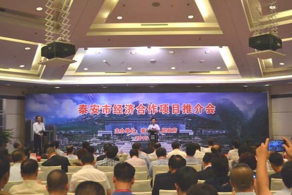 7日召開的泰安市經濟合作項目推介會上,泰安市各區縣作了投資環境推介。