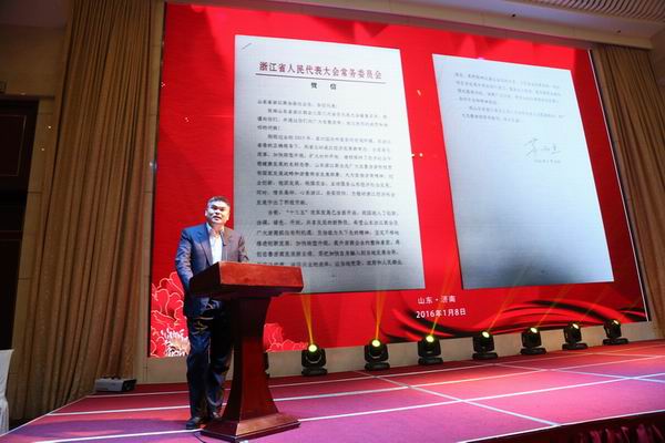 1月8日下午,山東省浙江商會成立12周年慶典系列活動在濟南山東大廈舉行,魯浙兩省的領導,浙江大學專家團隊,山東省浙江商會會員和分會代表,山東浙江籍商會和異地商會代表,金融界和媒體界人士約500余人參加了此次盛會。山東省政協原副主席李德強,中國工程院院士譚建榮,浙江省工商聯副主席李任治,浙江省人民政府經濟合作交流辦公室副巡視員吳永平,浙江大學工業技術研究院院長趙榮祥等領導和嘉賓作重要講話。