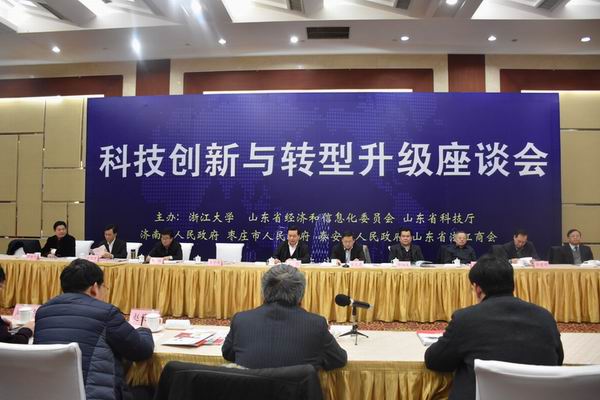 在山東省委省政府關懷支持下,由山東省浙江商會牽線搭橋,浙江大學、山東省經信委、山東省科技廳、濟南市人民政府、棗莊市人民政府、泰安市人民政府、山東省浙江商會聯合主辦的科技創新與轉型升級座談會,旨在借助浙大科技創新實力,促進山東各市產業轉型升級。副省長張務鋒親切會見出席座談會的譚建榮院士率領的浙江大學專家團隊,與專家們就拓展合作領域、提升合作關系、爭取合作成果作深入交談。在會見山東省浙江商會代表時,副省長張務鋒熱情洋溢的講話使與會浙商備受鼓舞。張務鋒代表省政府向投資山東的50萬浙商表示慰問,殷切期望山東浙商與山東各市攜手在創新轉型發展中作出新貢獻。