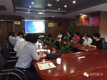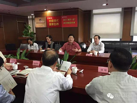 座談上,大家首先觀看了現代聯合集團的宣傳片,章鵬飛會長向煙臺客人介紹了現代聯合集團28年來的發展歷程,尤其重點提到了正在蓬勃發展的健康產業板塊。他表示,現代聯合集團的商業地產板塊,包括食品市場、茶城、名酒城、物流等項目都與健康產業息息相關,都涵蓋在大健康概念之下,目前集團正在進行健康文化村項目的規劃和建設。
