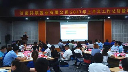 最后,由濟南祥順置業有限公司總經理徐建中對公司2017年上半年工作進行整體總結,并安排部署2017年下半年工作任務計劃。首先總結了上半年取得的成績,分析公司發展遇到的問題,并分別對各部門上半年的工作進行總結,對優秀部門、優秀員工進行了表揚;然后根據下半年的工作目標,對各部門提出了要求,必須完成既定的目標,做好工作總結和計劃安排,介紹公司未來戰略發展規劃,引領大家共同努力以確保2017年全年目標的完成。