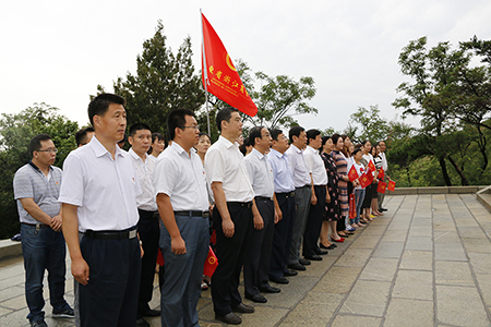 為紀(jì)念中國(guó)人民抗日戰(zhàn)爭(zhēng)勝利72周年暨中國(guó)共產(chǎn)黨成立96周年,7月18日上午,由山東省浙江商會(huì)執(zhí)行秘書長(zhǎng)、黨支部委員徐秀梅和泰安市經(jīng)濟(jì)合作局黨組書記、局長(zhǎng)王志翔帶隊(duì)到徂徠山抗日武裝起義紀(jì)念碑前聯(lián)合舉辦“追憶齊魯抗戰(zhàn)之義舉,共筑民族復(fù)興中國(guó)夢(mèng)”為主題的黨員教育活動(dòng)。