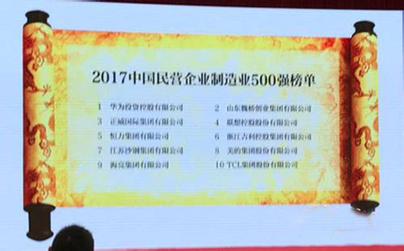中央統戰部副部長、全國工商聯黨組書記、常務副主席徐樂江發布2017年中國民營企業500強、中國民營企業制造業500強、中國民營企業服務業100強榜單。全國工商聯副主席黃榮發布2017年中國民營企業500強分析報告,與會領導為入圍企業頒發證書。本次發布會以“踐行新發展理念,推進新舊動能轉換”為主題,旨在增強民營企業發展信心,分享成功經驗,引領創新發展。