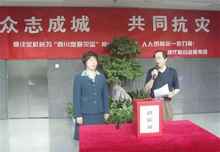 ?2008年5月15日,現代聯合集團向四川汶川地震災區捐款捐物總計322多萬元。