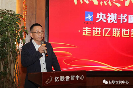 全國書畫藝術家一行觀看了億聯世貿中心項目宣傳片,聽取了總經理吳開鋒對企業的情況介紹,并現場創作書畫藝術作品。