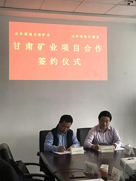王陽一行重點考察了現代聯合集團在濟項目。王陽一行參加了浙商與山東高速集團關于甘肅礦業項目合作簽約儀式,為浙商站臺,并友好交流。章鵬飛會長和山東高速投資發展有限公司副總經理、山東高速吉泰礦業投資有限公司董事長王留生代表雙方簽約。浙商和高速集團的合作,是浙商參與國企混改的創新嘗試。