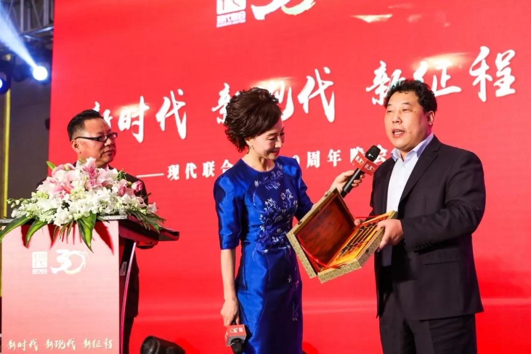 沒有來到現場的十屆全國政協副主席李蒙送來題詞,復星集團董事長郭廣昌、美特斯邦威董事長周成建、均瑤集團董事長王均金親筆簽名的賀詞祝賀現代聯合集團三十而立更加前程錦繡。富春集團董事長、上海浙江商會執行副會長張國標代表浙商,山東省原省長韓寓群代表關懷現代的老領導們送來了祝福或禮物,濟寧市委市政府發來賀信,齊秦、 朗朗等朋友也發來了祝賀視頻。