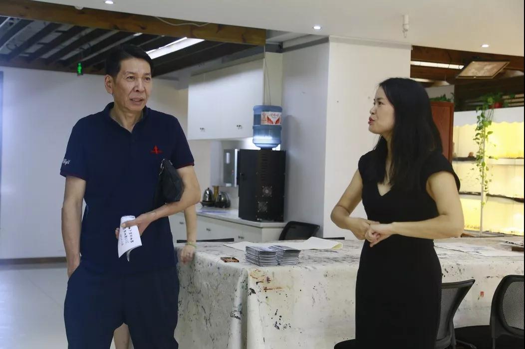 寧波悟境投資有限公司董事長洪根榮與現代畫院金莉梅交流