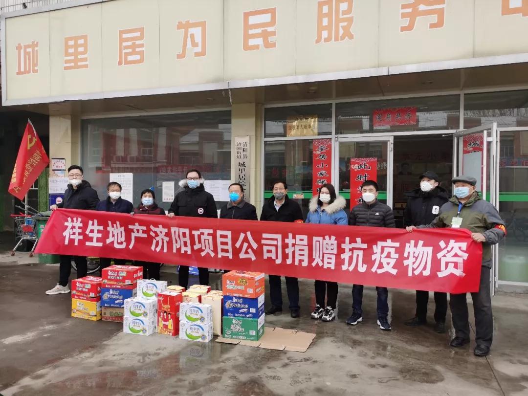 2020年2月15日,在物資愈發緊張的情況下,祥生地產濟陽項目公司向正安社區、西關村、南關村、徐家鑫苑、城里村、菅家社區、濟北開發區高速口、太平高速口等多個管控點捐贈方便面、牛奶、火腿腸、雞蛋、紙抽等慰問品,保證堅守一線的抗疫人員的基本物資。后期,祥生會繼續踐行責任、回報社會,為打贏疫情防控阻擊戰注入更大力量,為抗疫一線人員送去更多溫暖!