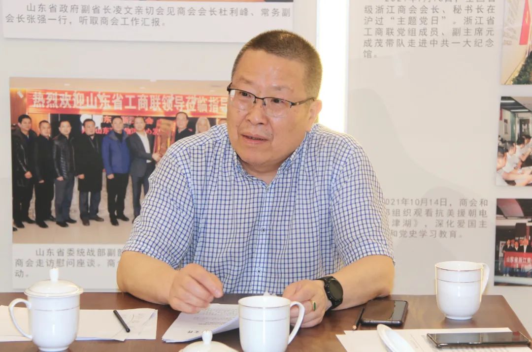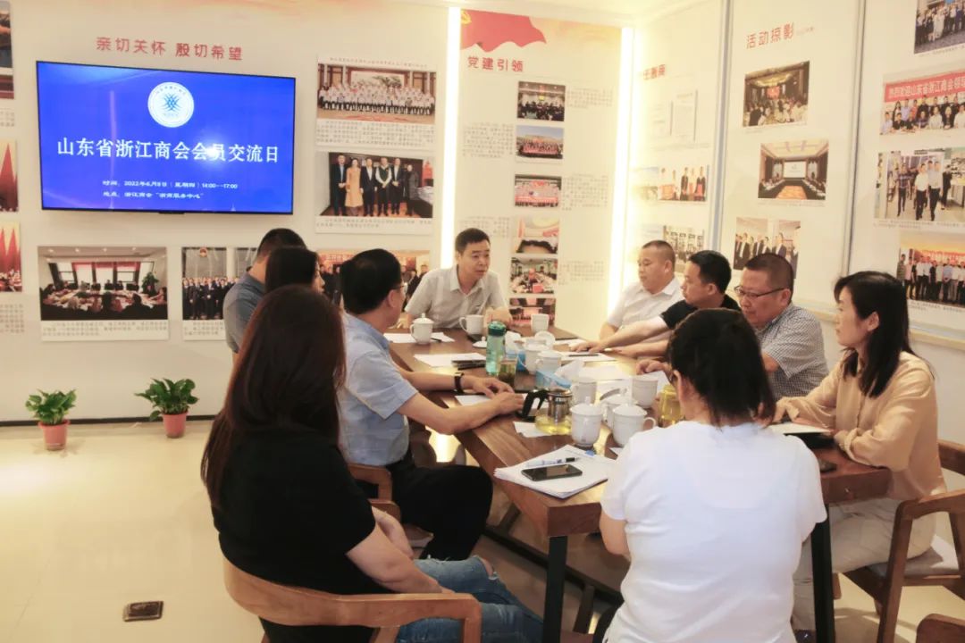 6月9日下午,山東省浙江商會會員交流日在浙江商會·“浙商服務(wù)中心”舉行。參加本次交流的有常務(wù)副會長蔣加良,常務(wù)副會長兼秘書長鄭海萍,副會長應(yīng)堅、毛繼輝、陳曉文、徐漢成,常務(wù)理事陳峰,副秘書長劉謐等。