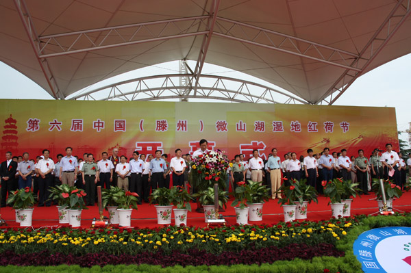 2009年8月8日,第六屆中國(滕州)微山湖濕地紅荷節(jié)在滕州隆重開幕。近千名國內(nèi)外嘉賓和客商參會。我會副會長陳桂宏、金龍、周云共、常務(wù)理事楊易成、常務(wù)副秘書長張宗建等應(yīng)邀參會。國務(wù)院南水北調(diào)辦公室副主任李津成在開幕式上致辭,棗莊市委常委、滕州市委書記王忠林致歡迎辭,棗莊市委書記劉玉祥宣布開幕。開幕式由滕州市委副書記、市長王剛主持。