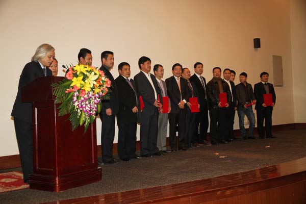 陳躍華常務(wù)副會長作財務(wù)審計報告;會上宣讀新當選常務(wù)副會長、副會長的任命決定并頒發(fā)證書;葉蘄萩副會長兼秘書長宣讀成立商會投資金融部的決定。