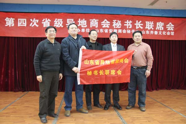 此次會議由山東省安徽商會主持承辦,會上將秘書長聯席會會旗交給下一屆承辦方湖北商會。