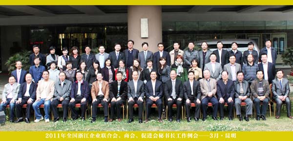 為加強全國浙江企業聯合會、商會、促進會之間的交流,總結秘書處工作,部署2011年度商會重點工作,浙江省經合辦于3月24—27日在云南省昆明市錦江大酒店組織召開了全國浙江商會秘書長工作例會。全國27個省市秘書長及秘書處人員、《今日浙江》、《浙商》雜志、浙商研究院、浙商銀行、浙江省農業區域合作促進會、清華學子促進會負責人或代表參會,我商會副會長兼秘書長葉蘄萩參加了會議。浙江省經合辦聯絡指導處處長吳永平、副處長方小東主持會議,浙江省經合辦副主任鄭憲宏出席會議并作了重要講話。