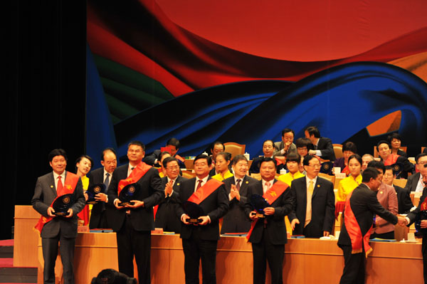 10月25日上午,首屆世界浙商大會在浙江省人民大會堂隆重開幕。我會會長章鵬飛,常務副會長金位海、陳躍華、陳桂宏、吳聯模、胡小軍,副會長兼秘書長葉蘄萩,副會長陶光忠、林體樂、吳昌碩、徐綏遠、萬順青等參加浙商大會系列活動。金位海常務副會長榮獲“企業創新獎”。