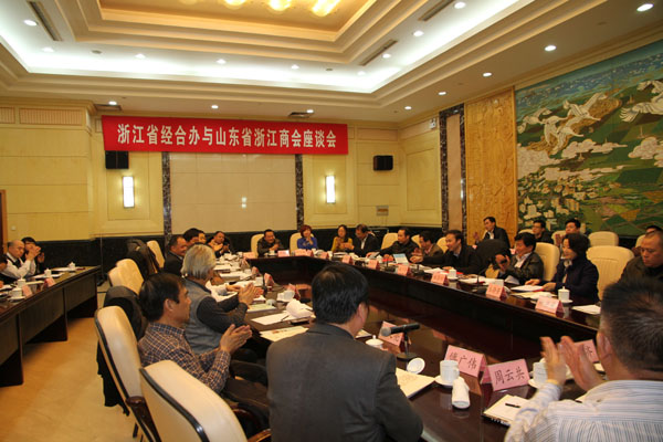 30日下午“浙江省經合辦與山東省浙江商會座談會”在山東大廈東營廳召開。章鵬飛會長在致辭中,首先代表商會對浙江省經合辦姚主任一行代表浙江省委省政府來看望在魯浙商和浙江省經合辦多年來對我會工作給予的大力關心和支持表示感謝。章會長介紹了商會從籌建自今的建設發展情況,浙商在魯投資情況以及商會在文化交流方面所作的工作,商會多次在杭州、濟南組織浙魯書畫名家交流筆會。日前,商會和現代聯合集團在濟南成功舉辦了“第23屆世界模特小姐大賽國際總決賽現代最佳形象獎”頒獎晚會。商會八周年慶典時,還將舉辦杭州小百花來濟大型演出活動。章會長表示在浙江省經合辦、山東省發改委的指導幫助下,把浙江商會建設成為最具生機和活力的商會之一,團結帶領廣大浙商推進全國浙商營銷網絡建設,協調服務好浙商投資山東,同時引導浙商反哺家鄉回歸發展。