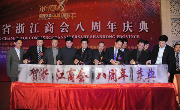 浙江省政協副主席王永昌對浙江商會八周年慶典表示祝賀,對浙江商會和浙商取得的成績表示祝賀。他說改革開放30多年來,近50萬在山東的浙商作為國內外浙商的優秀代表為魯浙兩省經濟社會發展作出了貢獻。王主席代表浙江人民對山東各級政府和各界給予浙商的支持幫助表示感謝。他希望新的一年,在山東的浙商企業紅紅火火,并繼續為山東經濟發展多出力多做貢獻,同時也要關注支持家鄉浙江的建設發展。